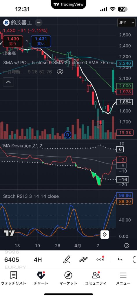 MA-Devitationが理由もなく下落していることは原則は利確