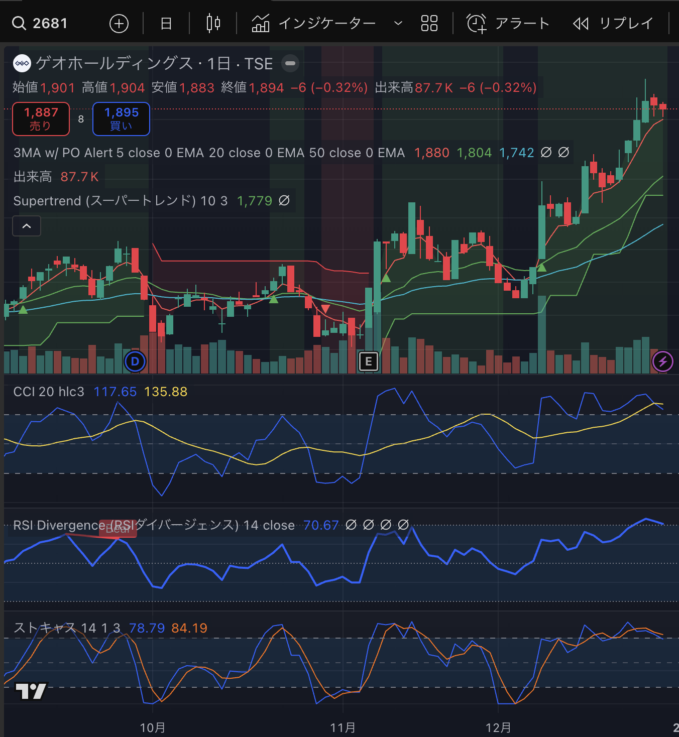 会社でコーヒーを作るタイミングでチャートを見ていたらシグナル点灯