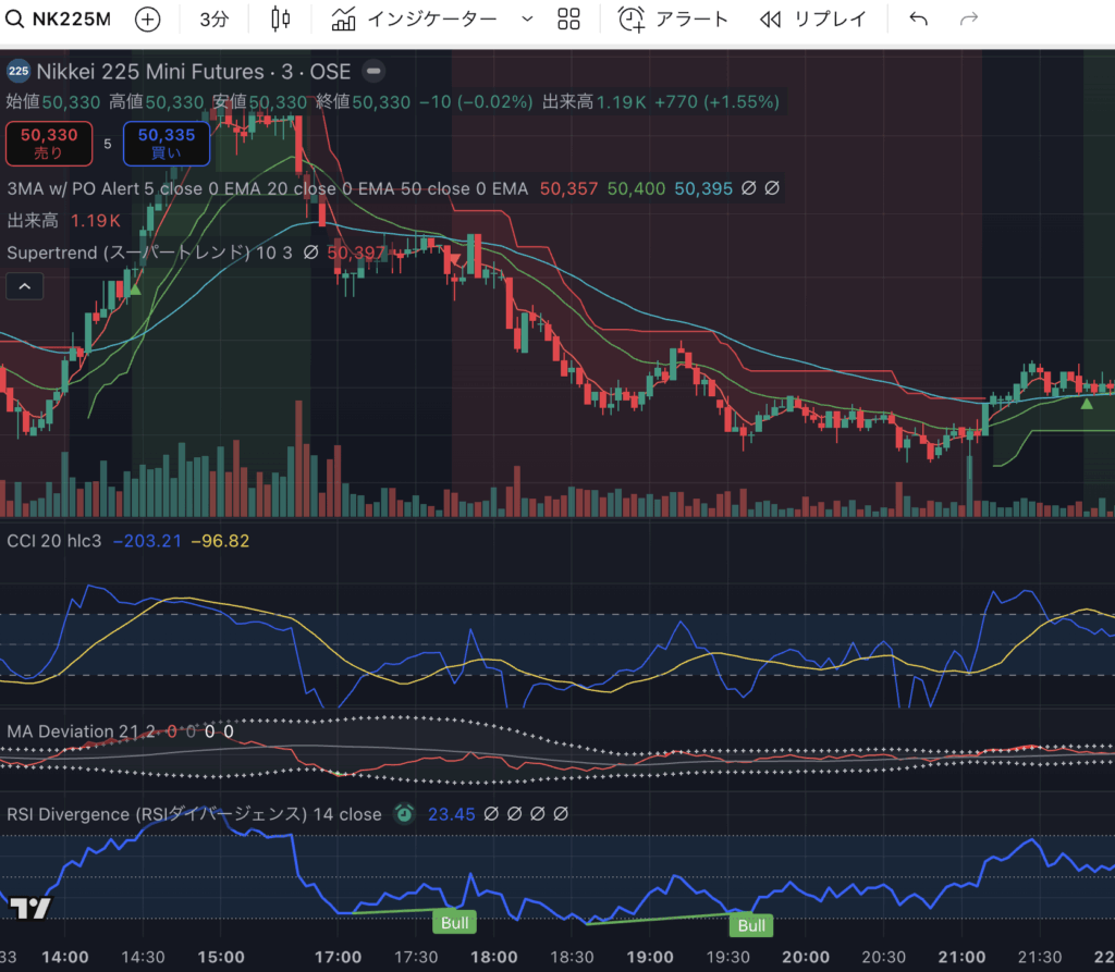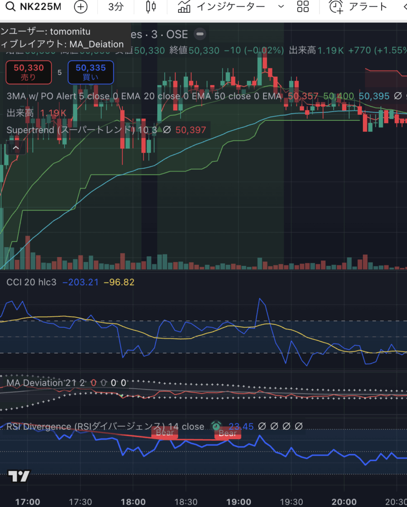 17:21 ロング → 17:47 損切り(50円幅)