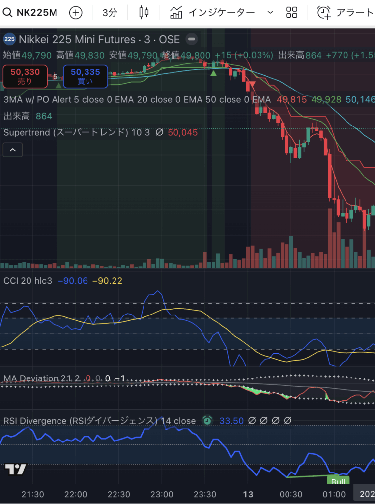 23:41 ロング → 1:01 損切り(650円幅)