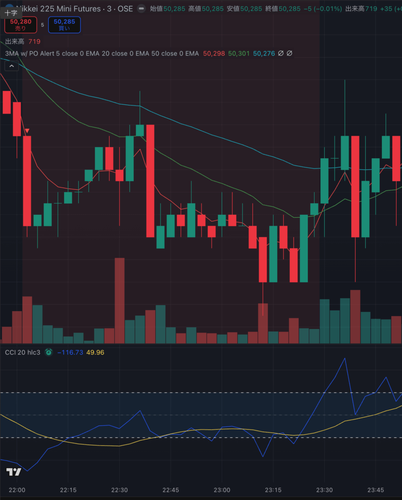 3分足で、CCIが100を下回ったタイミング、もしくは-100を上回ったタイミングでエントリー